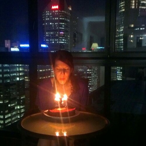 I turned 28 in our temporary apartment, celebrating with a cake on the 30th floor.